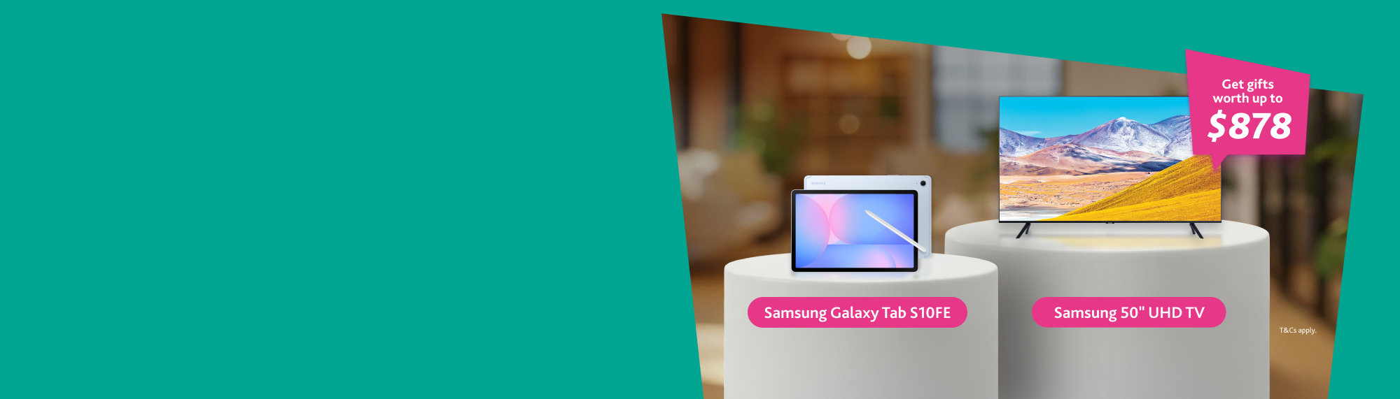 Get a FREE device of your choice: Samsung 50" Crystal UHD TU8000 (worth $749) or Samsung Galaxy Tab S10FE 5G (worth $878) |