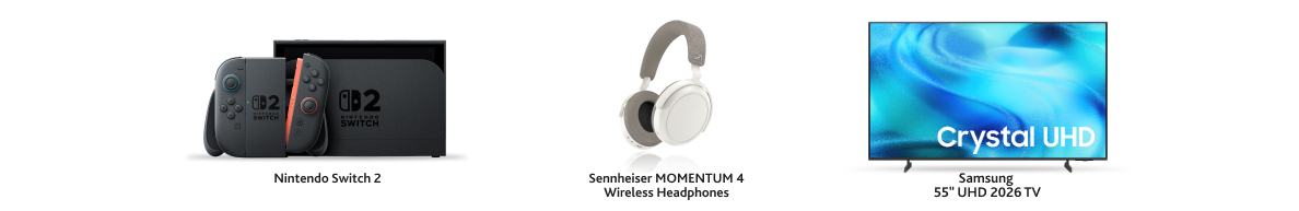 Choose from a Smart TV, Nintendo Switch 2 and more with a top-up!