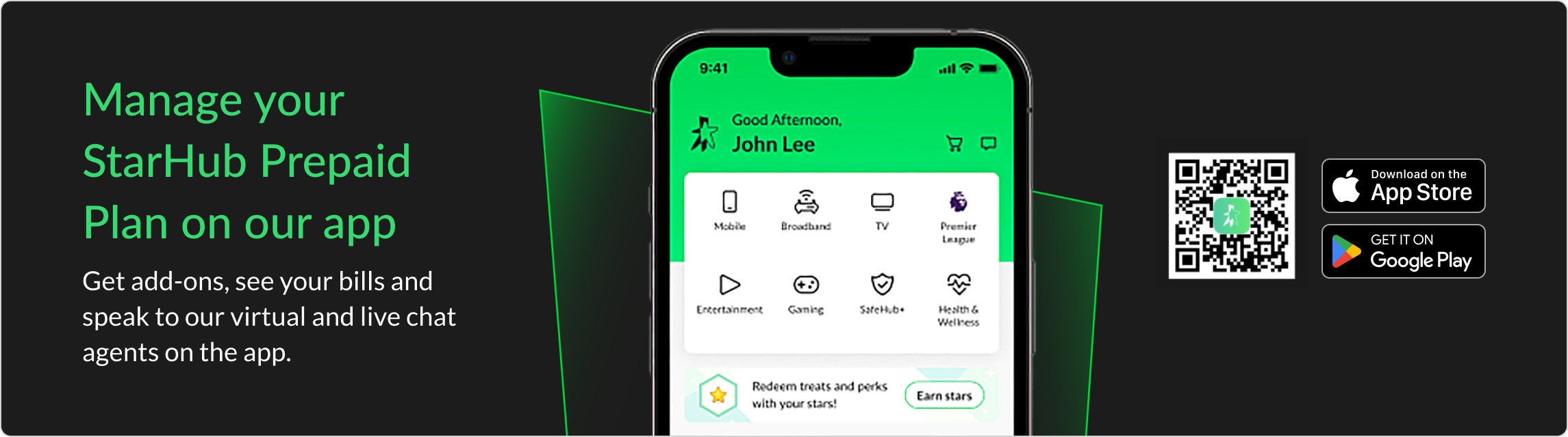 If you need assistance related to StarHub Prepaid Plan, you can reach out to us directly on the StarHub app. Our customer care is here for you 24/7 on the StarHub app.
